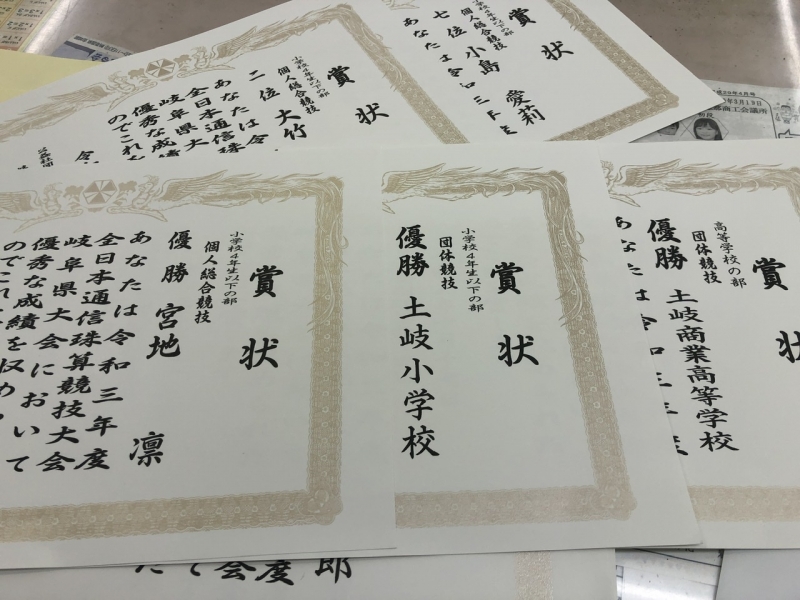 全日本通信珠算競技大会 岐阜県内結果!