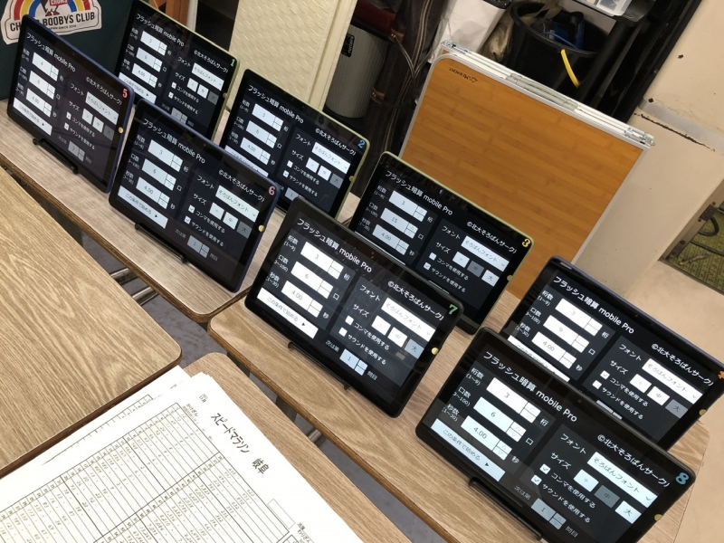 フラッシュ暗算練習用のノートパソコンから、10.1inchタブレットにリニューアルしました!九九の練習などにも活用しております。