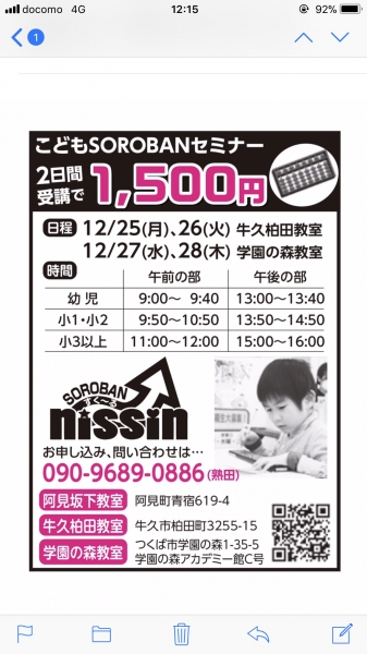 冬休みの12月25日〜28日にそろばんの体験教室を開催します。
