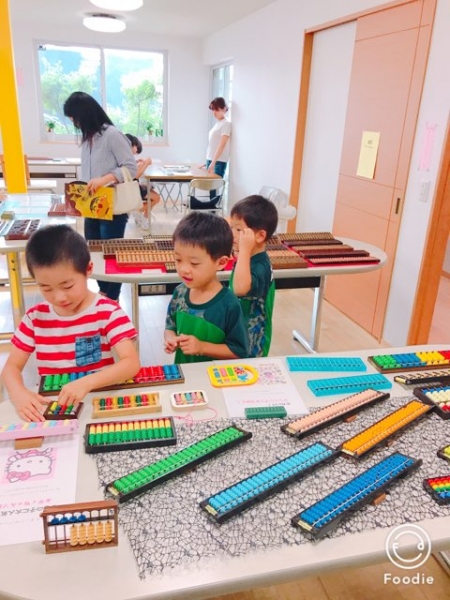 『青空そろばん教室』を開催しています♪ 晴れ・無風・気温23度以上を条件に、青空のもと楽しくそろばんをはじきます! 教室の中よりも外の方が人気があります(笑)