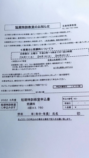 先着十名までとなっており普段以上に少人数ですので、さらに一人一人に合った指導をじっくりすることが可能となっております。