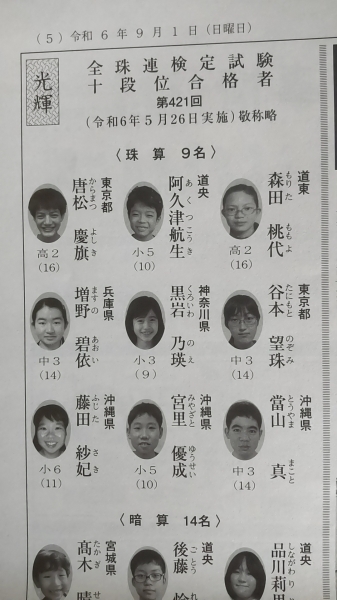 全国珠算新聞に十段合格者として、増野碧依さんが掲載されました!