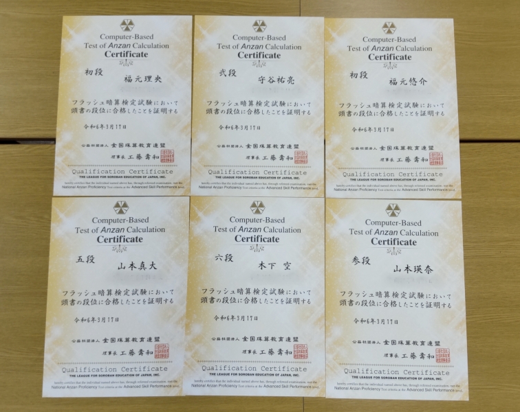 ✼当教室では、フラッシュ暗算は段位検定からの受検となります。