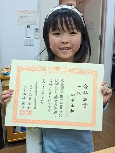 祐亮くんは、珠算・暗算合わせて『4つ』の級に合格しました✨
