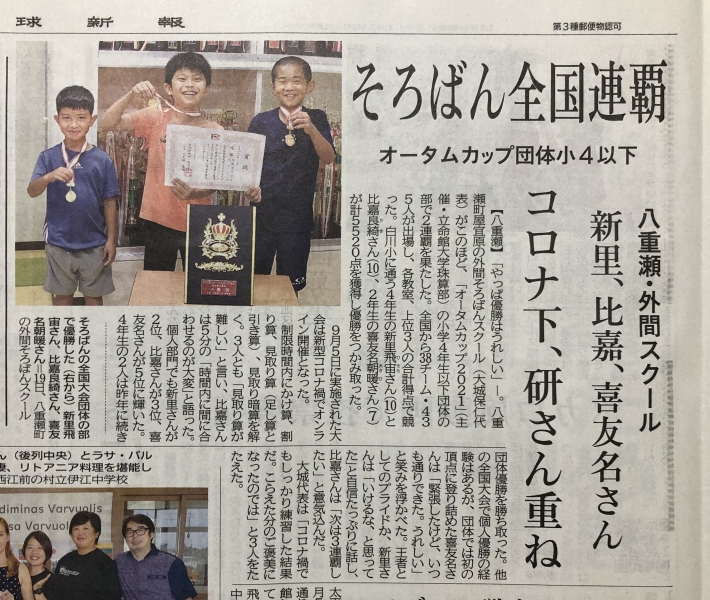 「七夕そろばんワールドon-line2021on-line」大会が行われ、団体戦では外間そろばんスクール全国第6位となりました。