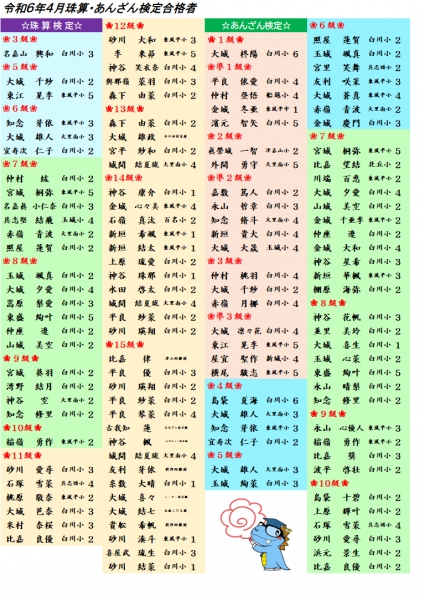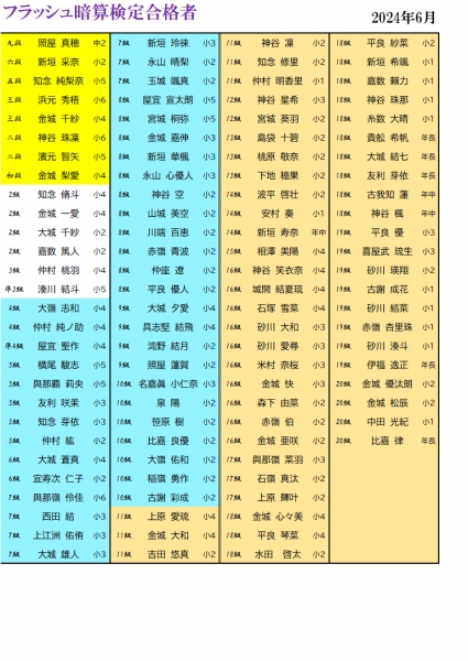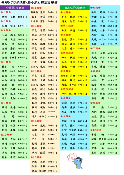 6月度珠算・あんざん・フラッシュ暗算検定合格者