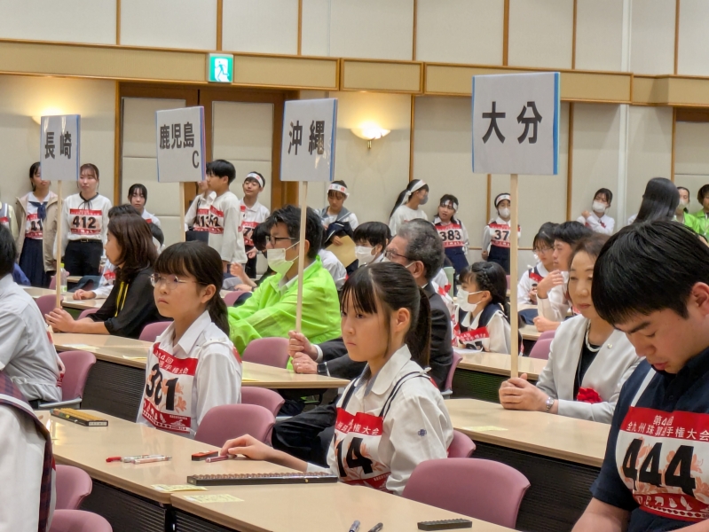 令和7年11月9日 鹿児島県市町村自治会館に於いて第44回全九州珠算選手権大会が開催されました。九州沖縄から各県代表260名が参加、大分県からは小学生14名 中学生11名 高校生1名が参加しました。