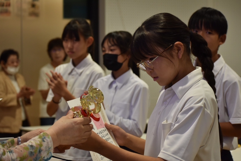 支部長あいさつの後、優秀・優良生徒表彰が行われ、優秀生徒代表として阿部凛果さん、優良生徒代表として田代葵咲日さんが表彰されました。永年在籍会員表彰・令和6年度事業表彰と続き、ご出席いただいた顧問・佐藤樹一郎大分県知事から総会開催への祝辞を頂きました。