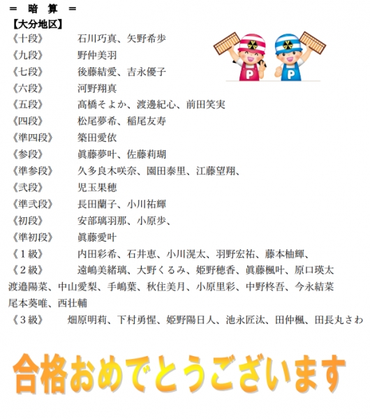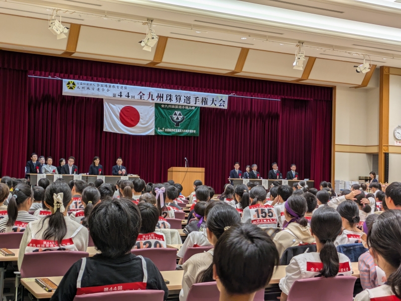 令和7年11月9日 鹿児島県市町村自治会館に於いて第44回全九州珠算選手権大会が開催されました。九州沖縄から各県代表260名が参加、大分県からは小学生14名 中学生11名 高校生1名が参加しました。