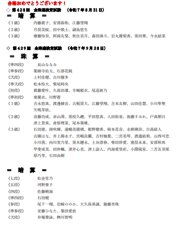 第427回6月・第428回7月検定試験の合格者を発表します。