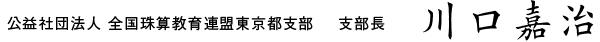 | (公社)全国珠算教育連盟 東京都支部のホームページをご覧いただき誠にありがとうございます。 当団体は、主に子供たちの計算力・集中力・忍耐力の向上を目標に、日々努力を重ねております。 また、検定試験をはじめ競技会など様々な行事を行いながら、会員一人一人が力を合わせて日々研鑽を重ねております。 ホームページをご覧いただき、多くの皆さまのご意見ご感想を、これからの珠算指導の内容充実に活かしてまいりたいと存じます。 |