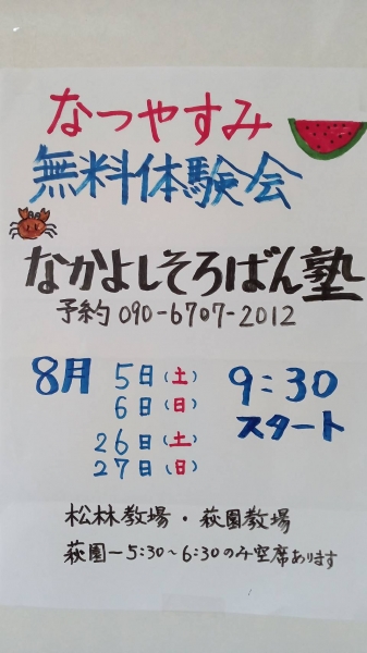 なつやすみ無料体験会のご案内です!
