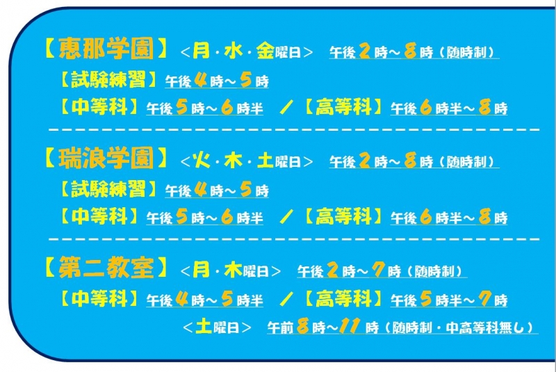 『恵那学園(月・水・金)/瑞浪学園(火・木・土)』