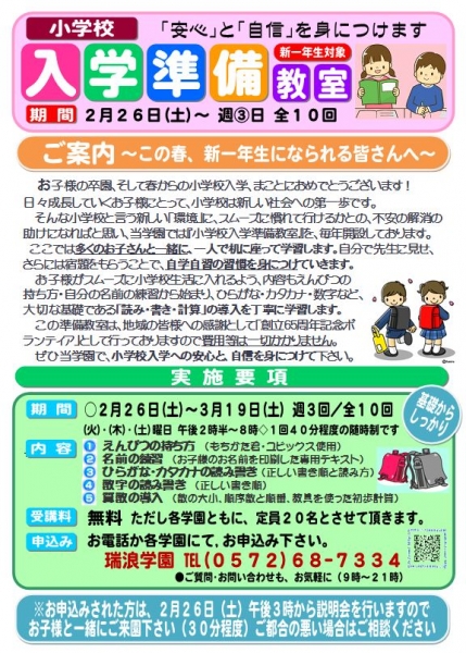 小学校入学準備教室 受付開始