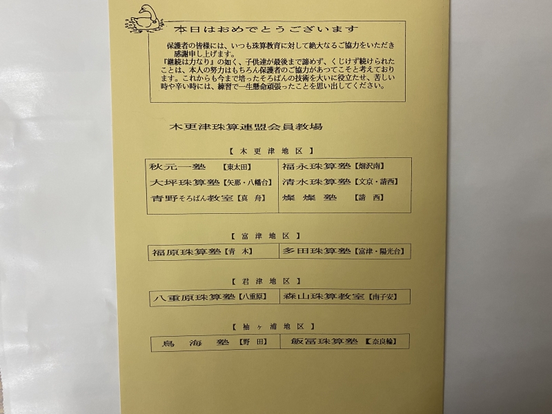 木更津珠算連盟では3月14日に優良生徒表彰式典が木更津商工会議所で行われる予定でしたが、コロナ禍のため昨年に続き各塾での伝達になりました。