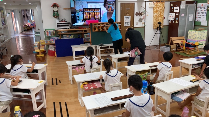 これからの興味の対象にそろばんが加わってくれればいいな ご協力くださっている幼稚園先生も強力な助手さんで大助かり!!