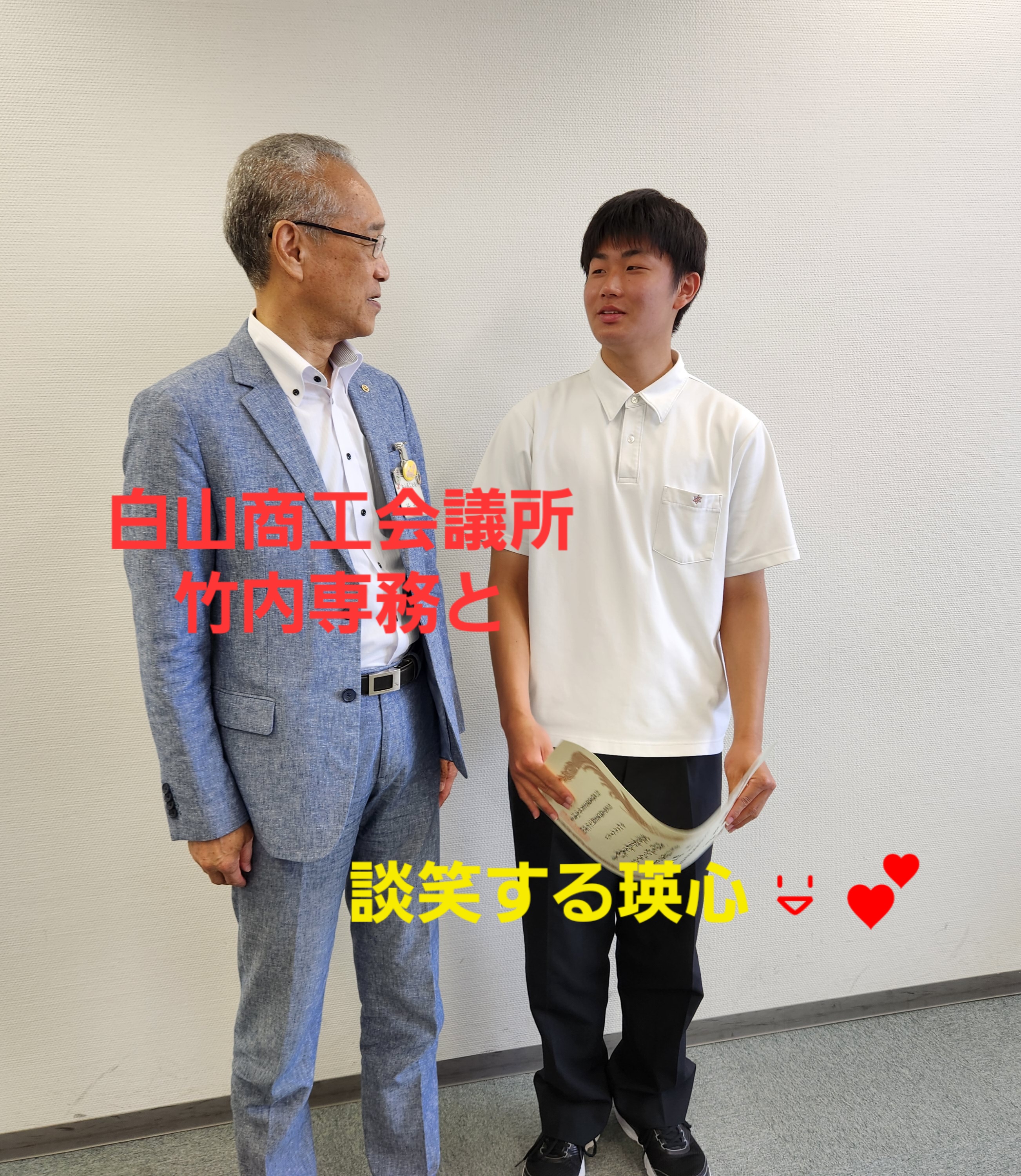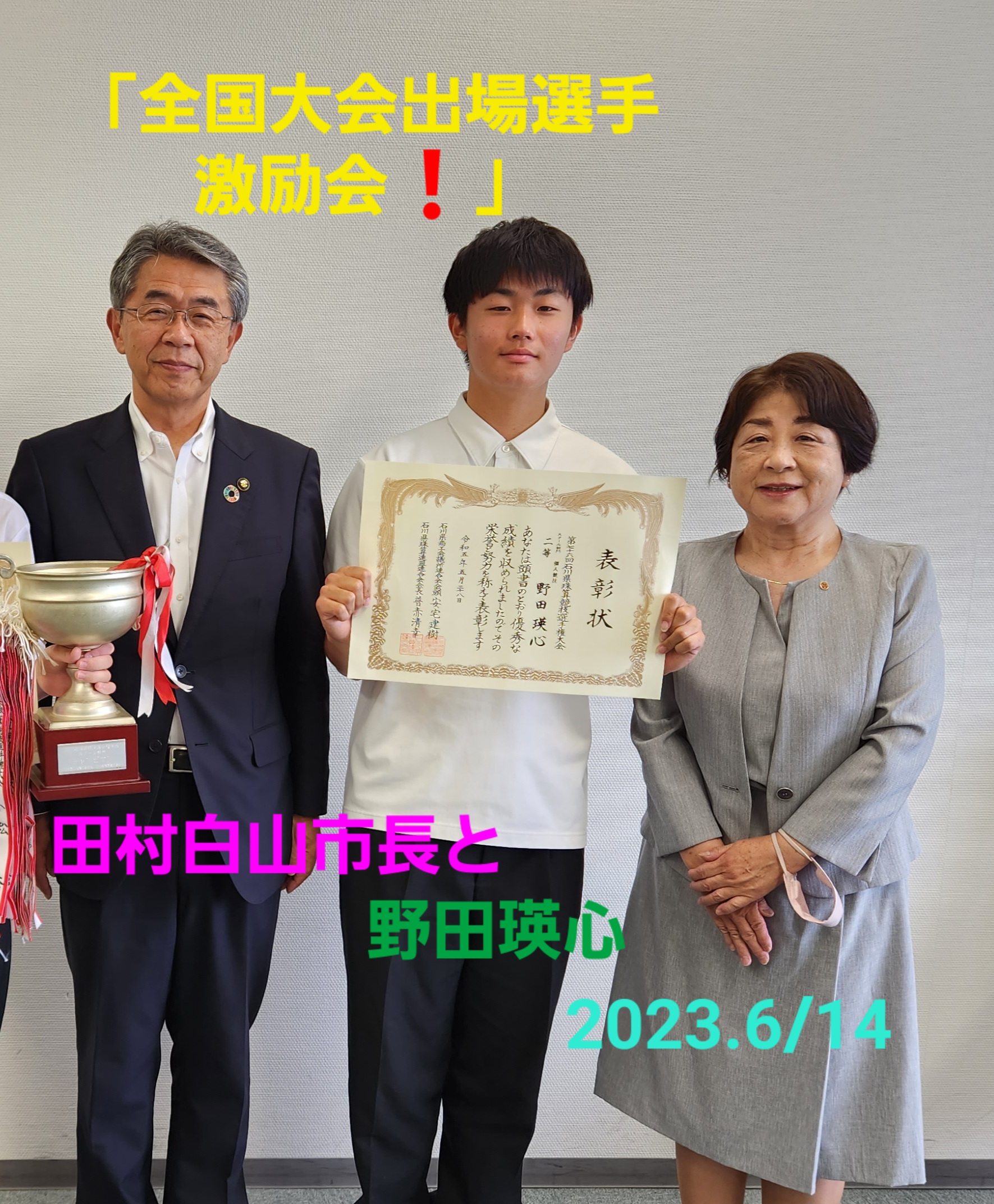 本日、全国大会出場選手として野田君が白山市長を表敬訪問し激励の言葉をいただきました!