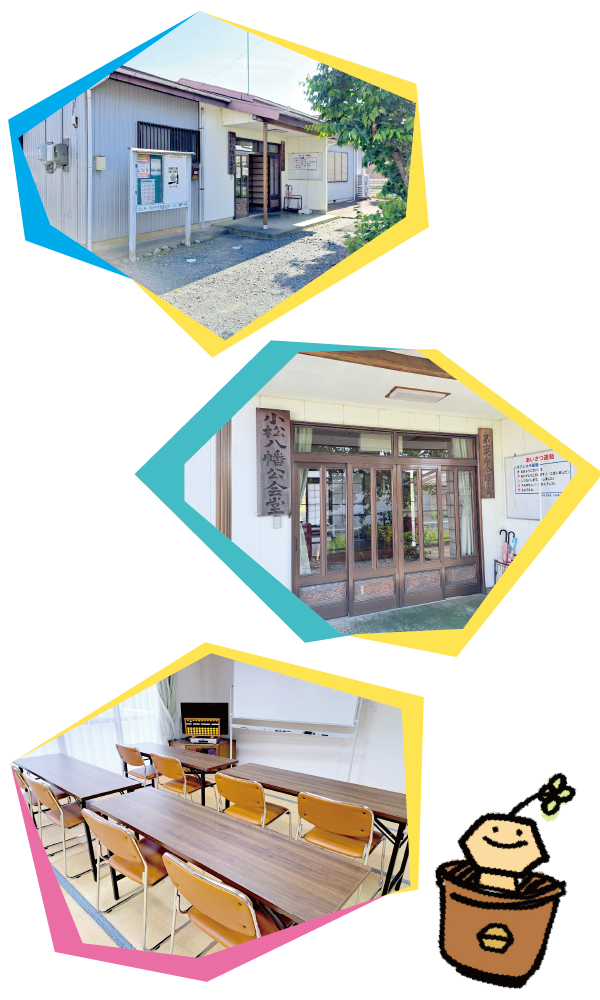 | 〒434-0042 静岡県浜松市浜名区小松214-1 (小松八幡公会堂) 建物裏側に駐車スペースあり |