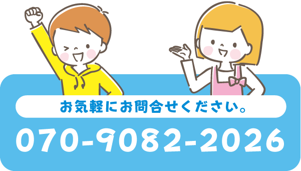 | まずはお電話にてお気軽にお問い合わせ下さい。そろばん教室につきまして知りたいことや気になることなどがございましたら、些細なことでも結構ですので質問をお待ちしております。 お試しの体験レッスンも開催していますのでぜひご予約下さい。 |