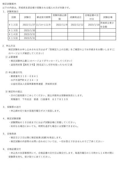 416回 検定試験 個人申し込み