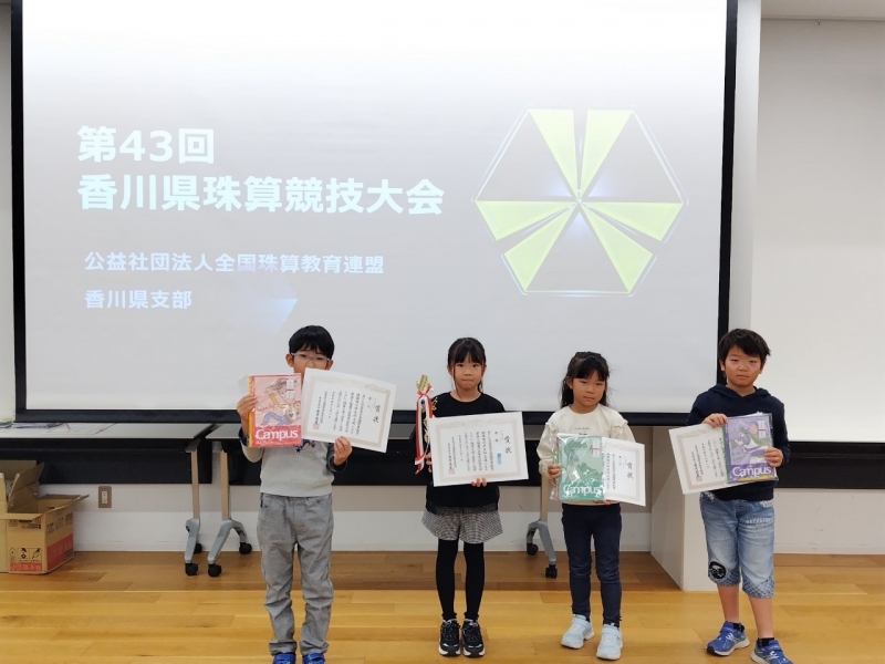 個人総合競技では爲廣大空君(三豊中3年)が優勝、2年ぶりの「そろばん香川県一」に輝きました。