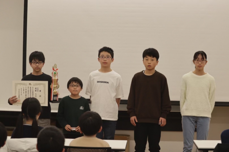 小学校の部 優勝 谷本義弥 2位 林果永 3位 三谷悠真、三好美咲