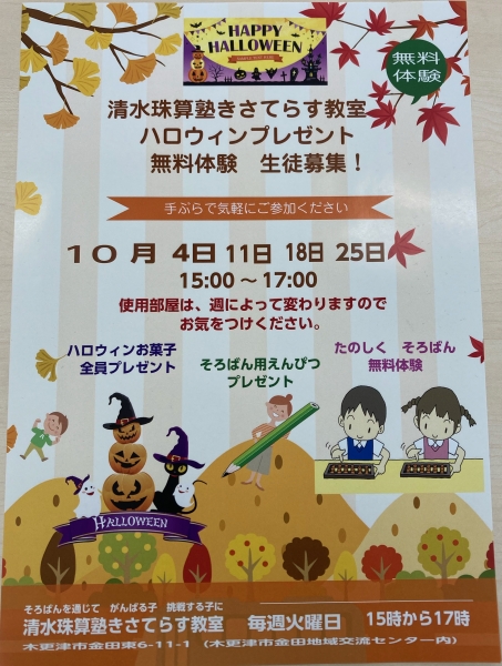 ハロウィンプレゼント付き無料体験 生徒募集中!