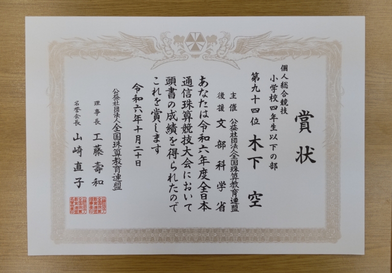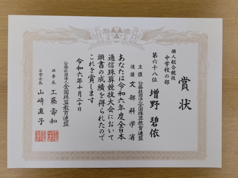 令和6年度全日本通信珠算競技大会【全国大会入賞者】