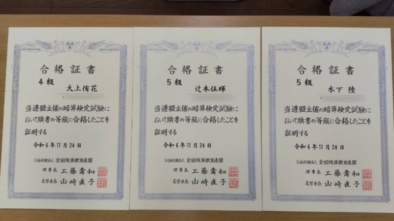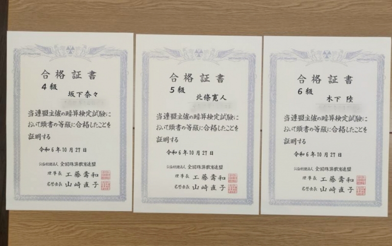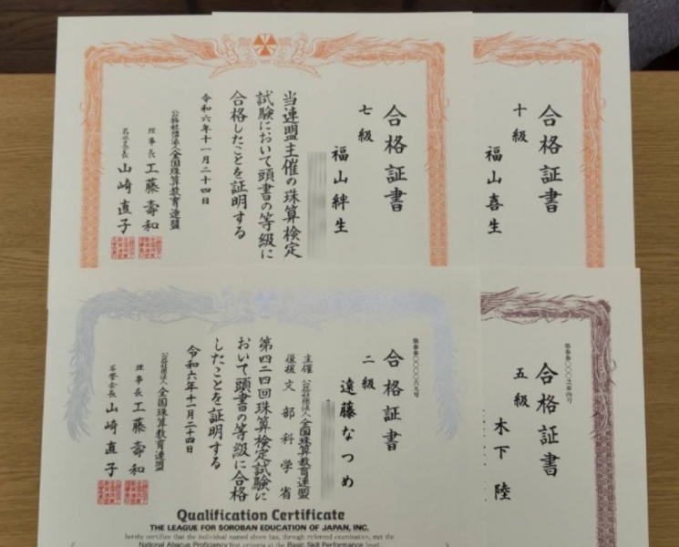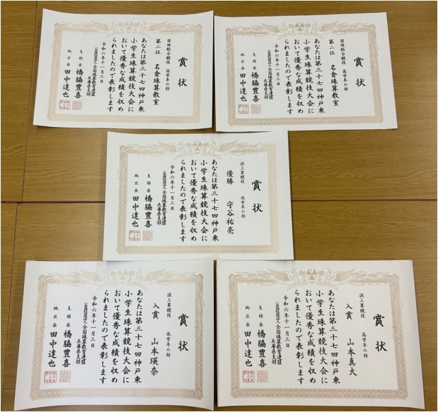 令和6年度全日本通信珠算競技大会【県大会入賞者】