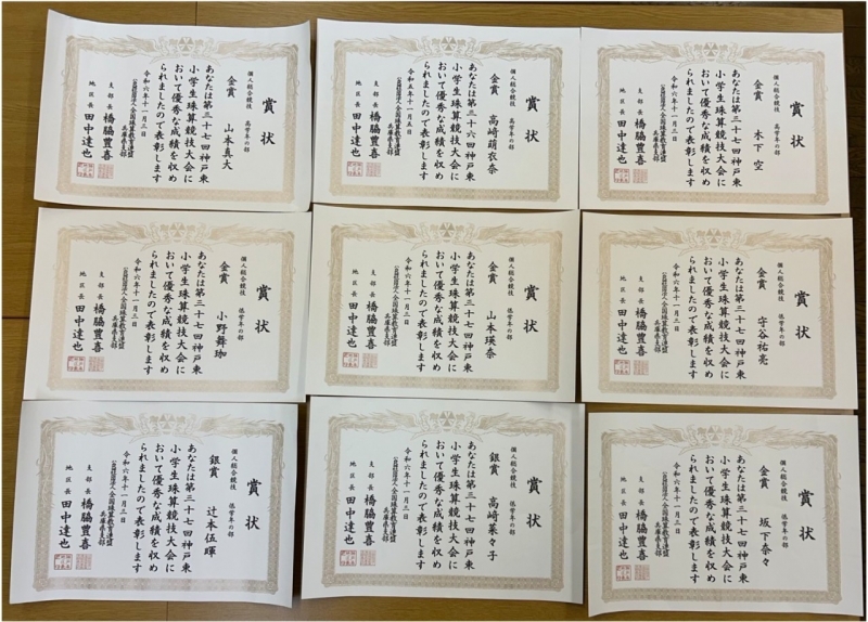 第37回神戸東小学生珠算競技大会結果