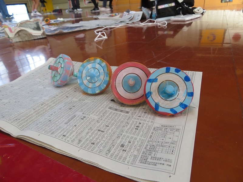 みんなとても上手にコマの色を塗り、楽しそうに回していました。