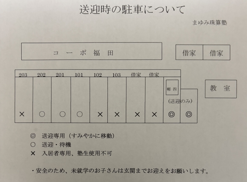 前回、お迎え時に行列ができご迷惑をおかけしたので、今回はお迎え時間が分散されればと思っています。ご協力よろしくお願いします。