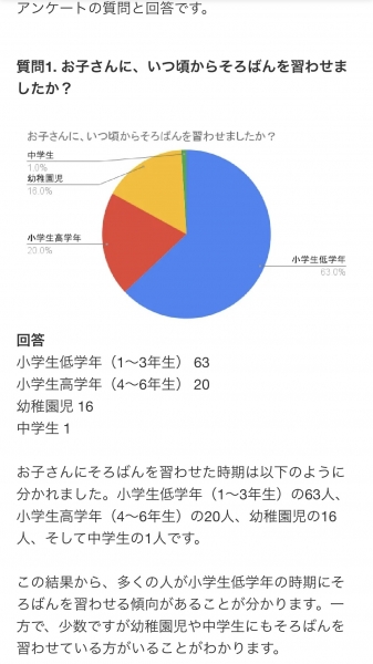 そろばん教室に通う子の保護者100人にアンケート調査より