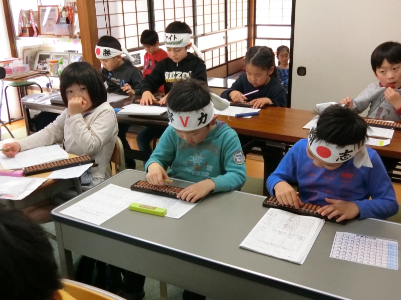 以前、「鉢巻」をしてそろばん練習。競技大会参加。結構流行りました。しかし、最近はほとんど見なくなりました。