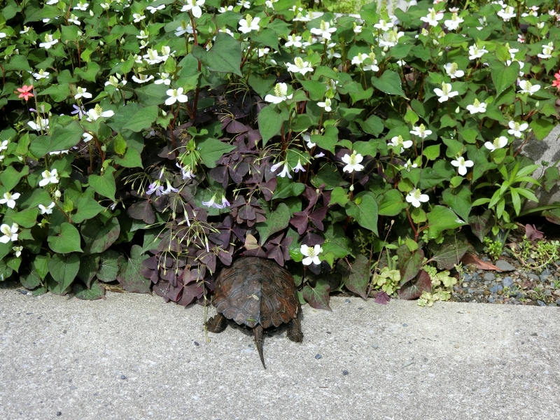 ある朝、どこから来たのか、一匹の「亀」がそこへ入ろうとしていましたので、パチリ。