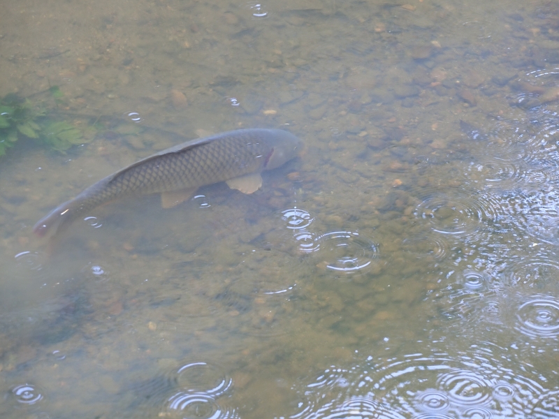 しかし、今年はその時期に川の嵩上げ工事。魚の姿を見ないでいましたが、何気なく覗いて見たら、一匹のコイがゆっくりと泳いでいるのが見えました。