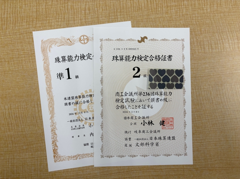 2025年12月3日(水)施行 岐阜県検定試験合格証書