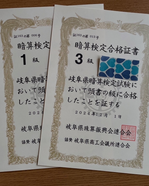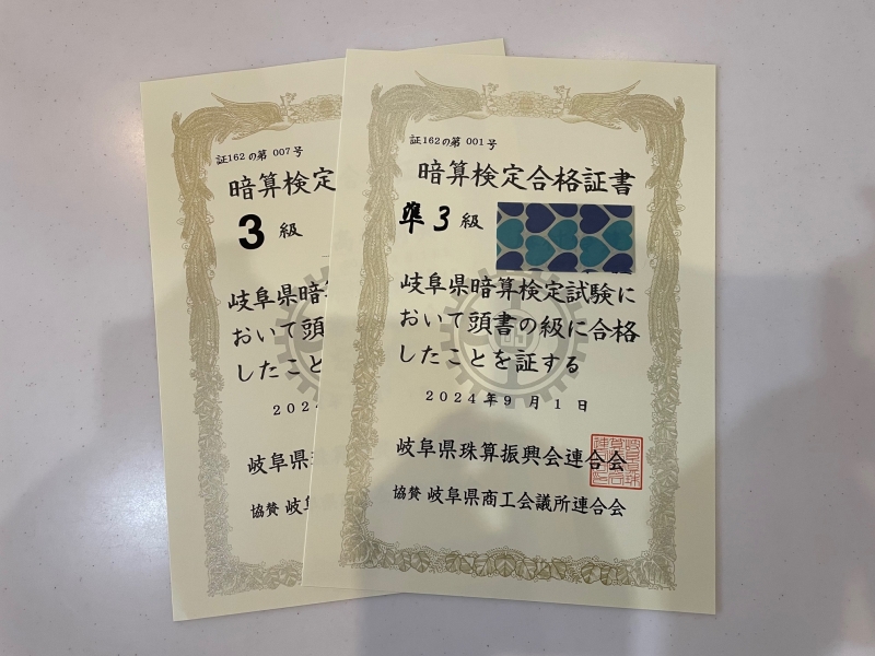 2024年11月27日(水)施行 岐阜県検定試験合格証書