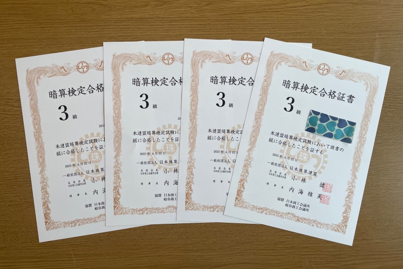 2025年4月9日(水)施行 岐阜県検定試験合格証書