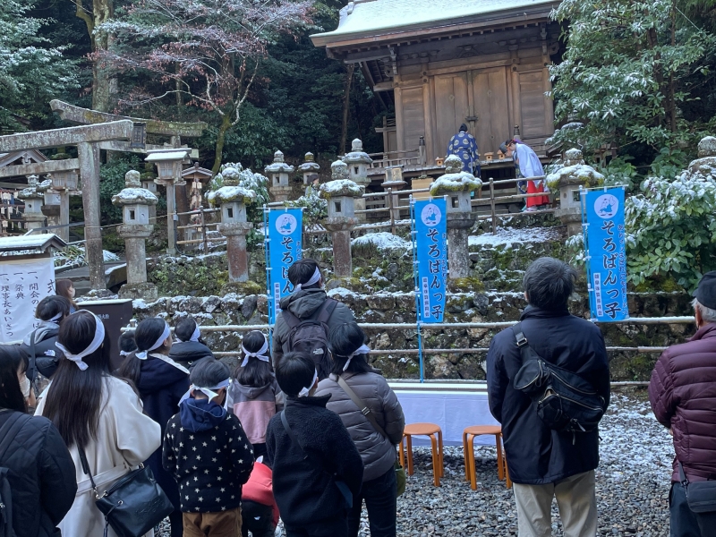 伊奈波神社の天満宮前広場において、はじき初めが行