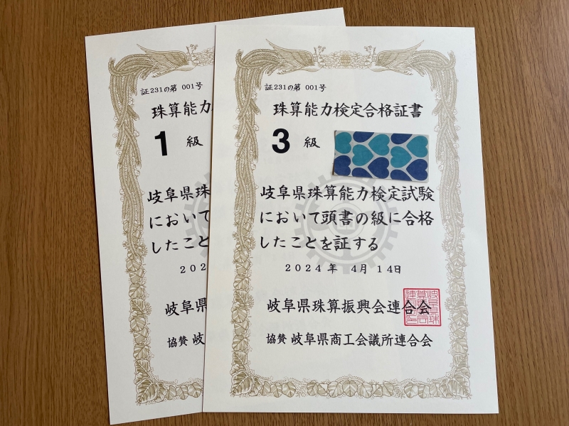 2024年4月10日(水)施行 岐阜県検定試験合格証書