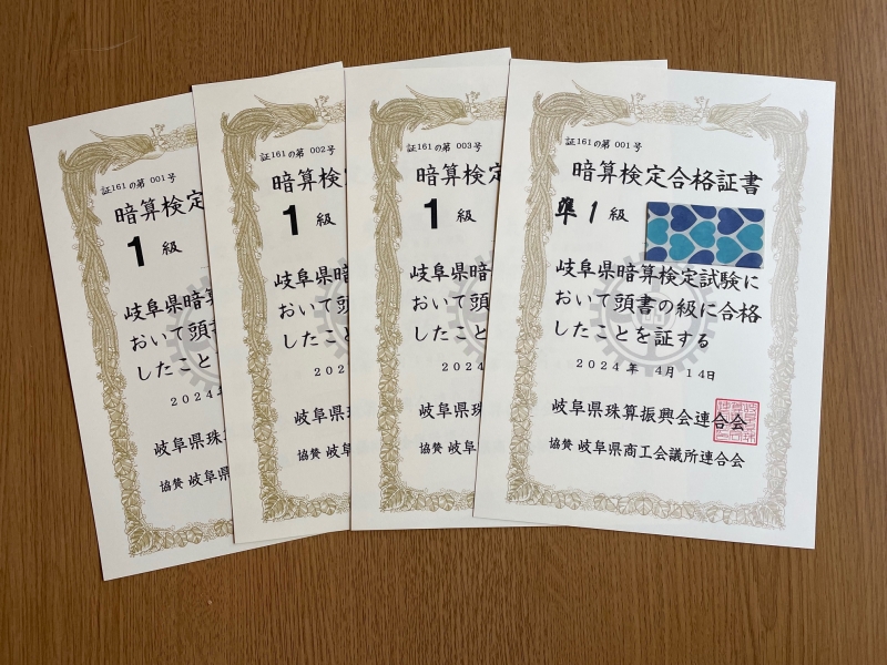 そろばん・暗算技能優秀な生徒達が岐阜市近郊の