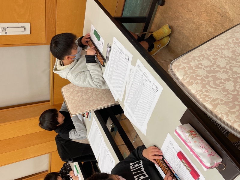 そろばん・暗算・読上げ算・フラッシュ暗算の練習を行い