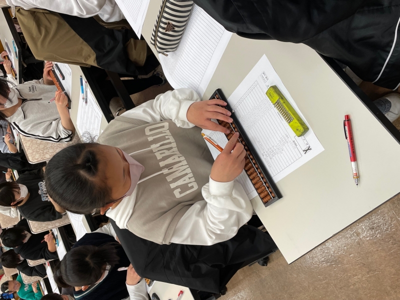 いただきます。また長~いそろばんを使って読上げ算