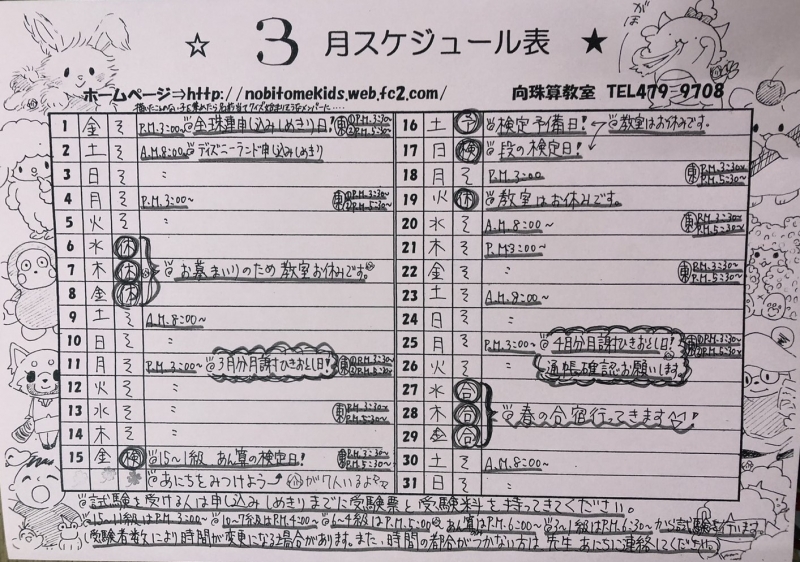 3月のスケジュール表です!