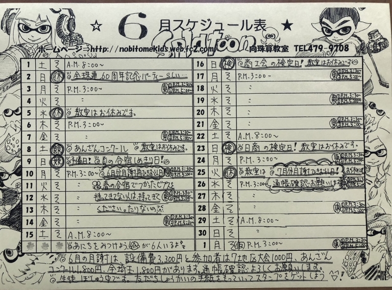 6月スケジュール表です。