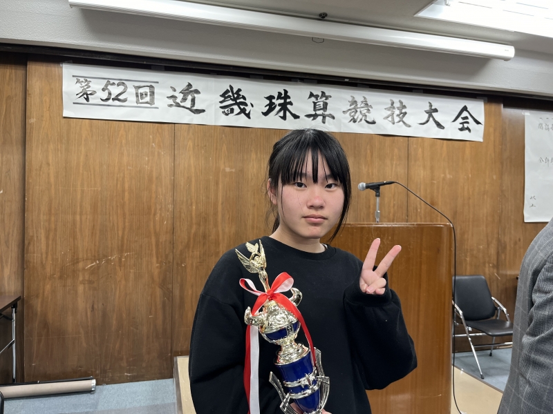 3年生の梶山礼温君が、満点を出し、同点決勝戦に挑戦し、見事に満点で優勝しました。