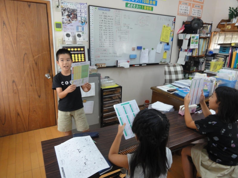 当教室は県内ではまだ少ない、フラッシュ暗算検定を導入しています。