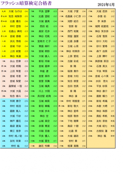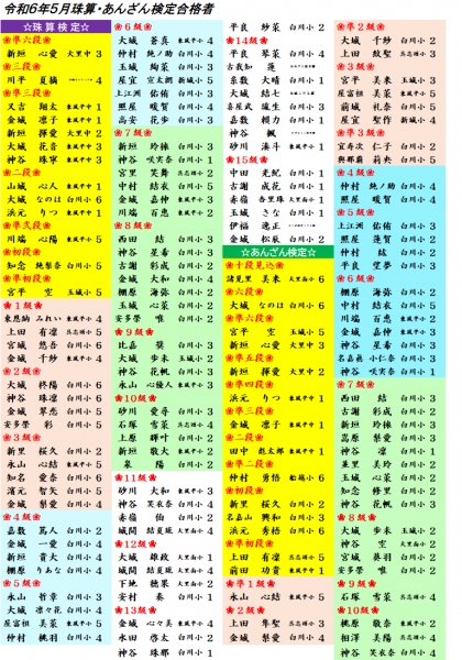 6月度珠算・あんざん・フラッシュ暗算検定合格者