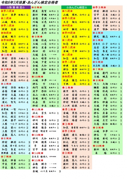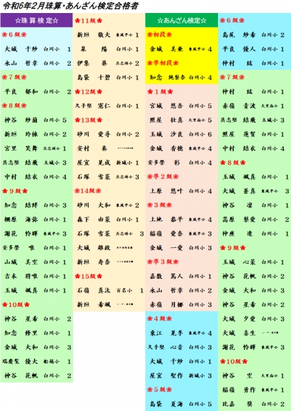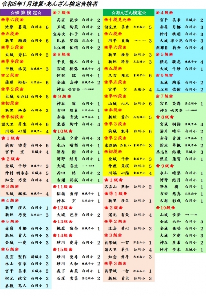 令和6年1月珠算・あんざん検定合格者